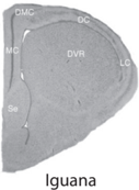๊ทธ๋ฆผ 7.1. ์ฌ๋ฌ ํฌ์ ๋ฅ ์ข ์ ๋ ํก๋จ๋ฉด. (ํ์ดํ๋ก ํ์๋) ํด๋ง ํก๋จ๋ฉด์ ๋ชจ๋ ์ข ์์ ๋ช ํํ ๊ตฌ๋ถ๋๋ ์น์ํ, CA3, CA1์ ๋ณด์ฌ์ค๋ค. ๊ทธ๋ฆผ์ Jaafar Basma ๋ฑ, 'The Evolutionary Development of the Brain as It Pertains to Neurosurgery,' Cureus 12, no. 1 (January 2020): e6748 (CC BY)์์ ๊ฐ์ํจ.