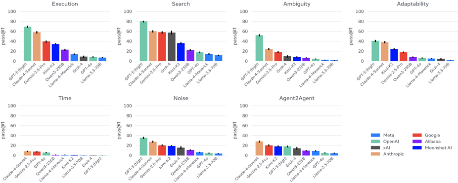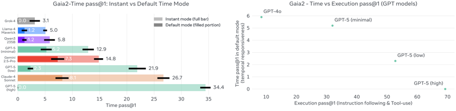 While today's frontier models are far from solving Gaia2, we do not consider it to be an 'AGI-level' benchmark; in the LLM and RL era, we expect rapid hill-climbing. However, we believe Gaia2, with its richer interactions with an environment and resulting spectrum of scenarios, is aligned with actual progress towards practically