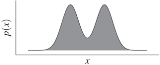 If its width is sufficiently small, the distribution P(X) is bimodal. Even if one does not know anything about the generating model, P(X) can be recognized as a mixture of two Gaussian distributions with equal width. In this case, one can therefore guess the joint distribution P(X,Y) from P(X) alone because it is natural to assume that the influence of Y consists only in shifting the mean of X. Under this assumption, we do not need any (x,y)-pairs to learn the relation between X and Y. Assume now that in a second data set we observe the same mixture of two Gaussian distributions but with different weights (see Figure 5.4, right). Then, the most natural conclusion reads that the weights have changed because the same equation (5.4) still holds but only P(Y) has changed. Accordingly, we would no longer use the same P(Y|X) for our prediction and reconstruct P(Y|X') from P(X'). The example illustrates that in the anticausal scenario the changes of P(X) and P(Y|X) may be related and that this relation may be due to the fact that P(Y) has changed and P(X|Y) remained the same. In other words, P(effect) and P(cause|effect) often change in a dependent way because P(cause) and P(effect|cause) change independently.